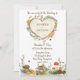 Estas acogedoras y dulces invitaciones a la boda incluyen ilustraciones de estilo rústico con setas, vegetación y hojas de otoño, así como una forma de corazón de madera preparada para ser personalizada con los nombres de la novia y del novio. Los detalles de tu evento aparecen en letras de guiones marrones y hay un punto en la parte posterior para agregar tu sitio web boda u otra información.