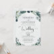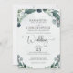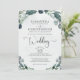 Hermosas y elegantes invitaciones a la boda, con salvia acuarela y verde eucalipto azul verde, con un suave fondo de agua verde, ideal para bodas de primavera, verano y otoño. Póngase en contacto con el diseñador a través de Zazzle Chat o makeitaboutyoustore@gmail.com si desea modificar este diseño, en otro producto o si desea coordinar elementos.