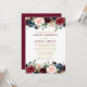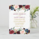 La moderna y elegante acuarela Floral y la invitación a la Boda de Oro incluyen rosas burdeos, rosas rosas rosas, flores rojas, flores azules y vegetación botánica.