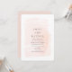 Invitación de boda con diseño acuarela rosa rubor en una fuente y diseño modernos. Tipografía en tinta gris. El reverso de la invitación es de un rosa sólido coordinado. Una invitación de boda simple pero hermosa.