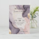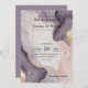 Invite a sus invitados con estilo con esta invitación de boda moderna que presenta una mezcla soñadora de acuarela de lavanda polvorienta y rosa suave. Las motas sutiles de lámina dorada añaden un toque de lujo, mientras que el diseño minimalista mantiene el enfoque en su día especial. Una elección perfecta para parejas románticas que buscan elegancia con un toque artístico.