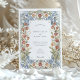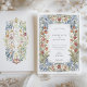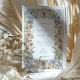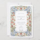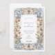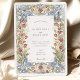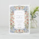 Esta romántica invitación a la boda presenta un diseño Art Nouveau pintado a mano, con un sorprendente borde de tulipanes en ricos tonos tierra (terracota, ocre dorado y rosa cálido) frente a los verdes sabios y los azules del cielo. Delicados rollos y acanthus deja entretejer a través del marco, abrazando el área central de texto con un flujo natural pero estructurado. La paleta de colores cálidos evoca una sensación de elegancia eterna, haciendo de este diseño un lugar ideal para bodas de otoño o celebraciones de inspiración vintage. Los florales, decorados con un estilo acuático elegante, son expresivos y detallados, destacando el encanto de la artesanía tradicional. En el reverso, un escudo botánico ornamental presenta un arreglo simétrico de florales y follaje con pastas suaves y matices antiguos, enmarcando la fecha y las iniciales. Esta invitación es perfecta para las parejas que buscan combinar el arte fino, la elegancia vintage y una temática floral romántica.