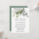Moderna y elegante acuarela La tarjeta de invitación a la boda de la vegetación botánica incluye hojas de eucalipto, follaje botánico verde, hojas azul polvorientas y otros hermosos paisajes botánicos. Sage Green Back.