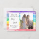 Comparte tu hermosa foto de compromiso en este Ahorra la Fecha de Acuarela de Arcoíris. Nuestra colección moderna de Acuarelas de Arcoíris presenta hermosos patrones de pincel de acuarela en tonos de arcoíris. Este elegante uso de tonos de arcoíris y hermosas fuentes dejará asombrosos a tus invitados. Ideal para parejas interesadas en la diversidad, chakras y parejas LGBT. Completa el look de tu boda con nuestra invitación, banda para el vientre, recepción, respuesta, tarjetas de agradecimiento y sello de goma.