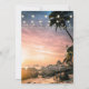 Invitaciones de boda de destino romántico de verano con costa costera, una puesta de sol hermosa, luces de cuerda y una plantilla de boda moderna para personalizar con tus propios detalles.
