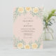 Este diseño muestra una paleta de colores suaves de durazno pálido y amarillo cálido, evocando una atmósfera serena y romántica. Rosas delicadas se emparejan con hojas de eucalipto de verde salvia apagado y racimos de pequeñas bayas. Estos elementos botánicos crean una estética etérea ideal para una ceremonia iluminada de primavera o verano.