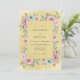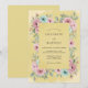 Este diseño muestra un vibrante fondo amarillo soleado complementado con un exuberante arreglo de flores acuarelas pictóricas. Rosas rosadas románticas y anemones teales llamativos se entrelazan con hojas de salvia verde suave y ramitas delicadas. El ambiente general es alegre y brillante, evocando la esencia de un prado estacional bañado por el sol en plena floración.