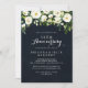 Esta invitación de boda de aniversario de 50 años floral blanca y verde es perfecta para un evento rústico. El diseño presenta elegantes peonías blancas en acuarela con follaje verde en un fondo azul oscuro. Cambie el número para celebrar cualquier aniversario.