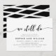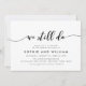 Elegante invitación de aniversario de bodas con las palabras "We Still Do" en una escritura cursiva relajada en negro sobre un fondo blanco que es perfecto para celebrar cualquier número de años. La tarjeta tiene un reverso negro con líneas blancas superpuestas.
