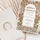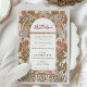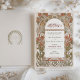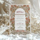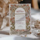 Esta impresionante invitación a la boda islámica presenta un diseño floral deliciosamente intrincado en ricos tonos otoñales de naranja quemado y verde, ambientado con un fondo crema clásico. La invitación incorpora una elegante caligrafía árabe en la parte superior, añadiendo un toque único y cultural que complementa perfectamente los sofisticados elementos Art Nouveau. Las obras de arte detalladas enmarcan los detalles bodas, creando una armoniosa mezcla de estilos tradicionales y modernos. La parte trasera de la invitación incluye un delicado monograma, lo que aumenta aún más su atractivo de lujo. Ideal para una elegante boda en otoño, esta invitación impresionará a sus invitados y marcará el tono para una celebración memorable.