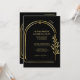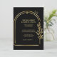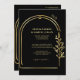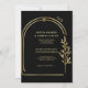 Invitación a la Boda de Arco Geométrico Floral Negra y Oro con una foto personalizada en la parte posterior.