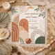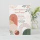 Eleva tu celebración de boda con esta invitación de boda boho moderna, que presenta una mezcla armoniosa de tonos terracota terrosos, verde salvia y crema. El diseño destaca arcos geométricos abstractos, círculos superpuestos y delicados acentos botánicos, creando una estética sofisticada y natural. Perfecta para parejas que abrazan un tema de boda bohemio, rústico o inspirado en el eco. Totalmente personalizable para incluir tus detalles de boda personalizados, esta invitación es una forma atemporal de establecer el tono para tu día especial.