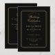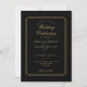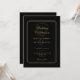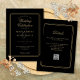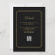 Elegantes líneas geométricas enmarcan su información de boda personalizada en tipografía dorada sobre fondo negro. Con sus datos y código QR del sitio web de la boda en el reverso. Diseñado por Thisisnotme©