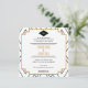 Invitación Boda Art Déco con Monograma Negro, Dorado y Blanco