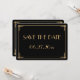 Tarjetas de invitación de boda redondas doradas y negras con texto personalizable de la boda Art Déco de Gran Gatsby