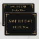 Tarjetas de invitación de boda con texto personalizable en oro redondo y negro al estilo del Gran Gatsby