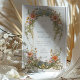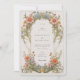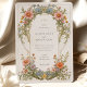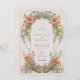 Este exquisito conjunto de bodas presenta un impresionante diseño Art Nouveau adornado con intrincados motivos de flores silvestres. La fachada de la invitación enmarca maravillosamente los detalles bodas con un frondoso follaje verde y delicadas flores silvestres en tonos rosas, azules, naranjas y amarillos, sobre un fondo blanco clásico. La parte trasera de la invitación muestra un arreglo simétrico de flores silvestres a juego, creando un aspecto cohesivo y sofisticado. Perfecto para un boda de temática jardiana o vintage, este conjunto de invitaciones combina elegancia atemporal con belleza artística, convirtiéndolo en una pieza inolvidable de papel boda.