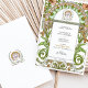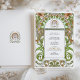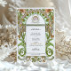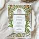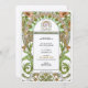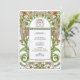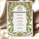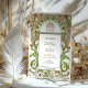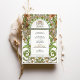 Esta exquisita invitación a la boda presenta un impresionante diseño de inspiración Art Nouveau, mostrando detalles florales intrincados en una armoniosa paleta de verdes suaves, rosa chispeante y amarillo dorado. El borde está adornado con adornos estilizados de amapolas, margaritas y otros elementos botánicos, creando un ambiente sofisticado y natural. El centro de la tarjeta presenta una sección de personalizable para los detalles de su evento, enmarcada elegantemente por los motivos florales ornamentales. Perfecto para las parejas que buscan una elegancia intemporal, este diseño combina la artesanía artística con temas botánicos románticos, lo que lo convierte en el lugar ideal para los bodas de temática vintage o de inspiración natural.
