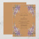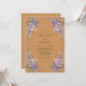 Este diseño presenta un cálido fondo de sienna que contrasta bellamente con exuberantes racimos de hortensias lavanda. Un delicado follaje verde y dorado flanquea los lados, creando una refinada atmósfera otoñal. Perfecto para un evento rústico o bohemio, las ilustraciones botánicas de acuarela ofrecen una estética vintage.