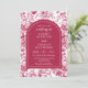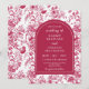 Esta hermosa y elegante invitación a la boda presenta un antiguo patrón de Chinoiserie rosa. El texto combina el guión manuscrito y las fuentes serif para un aspecto elegante y moderno. Es perfecto para una boda de primavera o verano en el jardín.