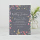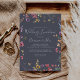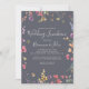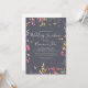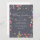 Esta clásica invitación a una ducha nupcial con boda de luncheon azul es perfecta para una ducha rústica de bodas. El diseño se compone de flores silvestres amarillas, violetas y blancas con follaje en un fondo de color rosa y verde.