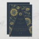 Esta singular invitación a la boda azul marino presenta girasoles dorados y amarillos dispuestos de manera artística alrededor de un marco triangular central, que combina el encanto rústico con la geometría moderna. El diseño audaz resalta sus nombres y detalles en el interior del triángulo, mientras que los ilustraciones de girasol ofrecen un toque botánico cálido. Todos los elementos están impresos en color, sin Relieve metalizado ni efectos metálicos. Ideal para bodas de jardín, campo o contemporáneos.