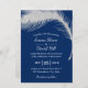 Invitación Boda azul de la marina de plumas de pavo real plat