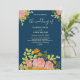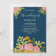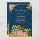 Invitación Boda azul de la Marina Oscura floral Botánica