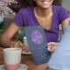 Elegante, moderna, contemporánea, minimalista, sencilla invitación a una boda púrpura y azul marino con monograma único y código QR en la parte trasera.