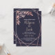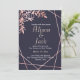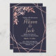 Invitación boda azul marino del marco geométrico de oro Rosa