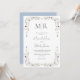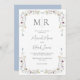 Hermosas flores silvestres simples y dulces revoloteando alrededor de esta invitación a la boda de bonito. Fondo azul. Añada sus monogramas iniciales en la parte superior de esta invitación.