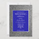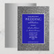 Esta invitación de boda de lujo clásica y elegante combina el brillo chic plateado y azul real con una moderna caligrafía. La elección perfecta para bodas de invierno glamorosas, añadiendo un toque de brillo y sofisticación a su día especial.