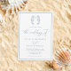 Este diseño clásico mínimo blanco y polvoriento azul de invitación a la boda es perfecto para bodas con temática costera y náutica y destino de playa, con dos hermosos caballitos de mar besándose en la parte superior, elegante caligrafía de escritura, y un marco alrededor del borde.