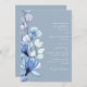 Esta elegante y polvorienta invitación a la boda floral azul puede ser personalizada con su información en tipografía de moda con su sitio web boda código QR al revés. Diseñado por Thisisnotme©