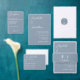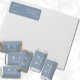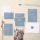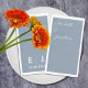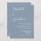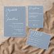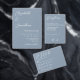 Elegante colección clásica de bodas monogramados en azul y blanco polvoriento con sus iniciales en texto minimalista tradicional.
