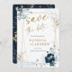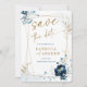 Invitación Boda azul y oro de la marina salva la fecha