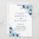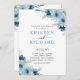 Esta elegante invitación a la boda incluye acuarela floral pintada a mano en azul polvoriento, gris y verde