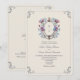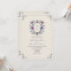 Haz tu día especial inolvidable con nuestra lujosa invitación de boda vintage barroca. Este exquisito diseño presenta un impresionante monograma de la pareja en la parte superior, enmarcado elegantemente por intrincados detalles florales victorianos en rosa y azul polvoriento. La perfecta combinación de sofisticación refinada y encanto atemporal, es un verdadero reflejo de una historia de amor destinada a ser celebrada con estilo. Para mayor comodidad, incluye un código QR personalizado en la parte posterior para RSVP en línea sin problemas y fácil acceso a tu sitio web de boda.