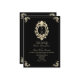 Haga una declaración con esta invitación a una boda barroca en blanco y negro con un marco vintage ornamental y una elegante pieza central de monograma. Diseñada para parejas que albergan una celebración de boda de lujo, corbata negra o formal, esta invitación atemporal marca el tono perfecto. El dramático fondo negro resalta el florecimiento del oro de aspecto metálico y los detalles de tu boda en un elegante tipo de letra de guión. La parte posterior opcional en blanco permite añadir una redacción o fotos. Ideal para bodas glamorosas de invierno, celebraciones de Nochevieja o veladas de moda.