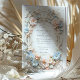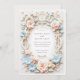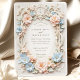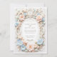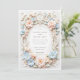 Esta elegante invitación a la boda combina el arte barroco con suaves detalles florales, creando un diseño lujoso e intemporal. El marco ornamentado de azulejos en tonos crema y marfil está adornado con flores pastel, como hortensias rosa y azul claro, todo ello rodeado de una crema refinada. El diseño de la fachada destaca una armoniosa mezcla de encanto vintage y sofisticación romántica, mientras que la parte trasera cuenta con un minimalista monograma ornamental rodeado de intrincados motivos simétricos. Perfecto para las parejas que planeen un boda clásico, formal o de inspiración jardín, este diseño ofrece una adición exquisita y coherente a su suite de papelería.