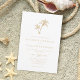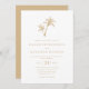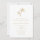 Esta sencilla y mínima invitación a una boda tropical en la playa cuenta con dos palmeras en la parte superior, con textos clásicos y elegantes, en tonos blanco y beige de playa, y con una combinación de beige en la parte posterior.
