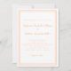 La elegante y moderna invitación de boda presenta un diseño minimalista moderno contemporáneo simple con un borde de doble marco en melocotón contemporáneo sobre un fondo blanco crujiente. La redacción tradicional proporciona una sofisticación atemporal pero moderna. Personalice el diseño de la boda con sus detalles en letra y caligrafía de melocotón. La parte posterior de la tarjeta coincide con el melocotón.