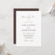 Eleva tu celebración con estas invitaciones de boda diseñadas para una elegancia atemporal. Perfectas como invitaciones de boda modernas o invitaciones de boda digitales, son ideales para invitaciones de boda de otoño, invitaciones de boda sencillas e ideas inspiradoras de invitaciones de boda. Creada para una apariencia refinada, encarnan invitaciones de boda elegantes, invitaciones de boda únicas e invitaciones de boda formales en un estilo de invitaciones de boda marrón rico. Utilice esta plantilla de invitaciones de boda marrones que presenta tonos de marrón chocolate y marrón espresso, ideales para una boda de chocolate marrón, boda verde y marrón o tema de boda marrón. Este diseño de boda marrón se ajusta a una boda de dinero antiguo, boda victoriana, tema de boda de ópera o boda dramática