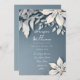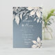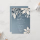 Invitación de boda mágica en invierno maravilloso, con flores blancas de invierno nítidas contra un fondo azul gradiente.