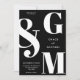 Invitación moderna y simple a la boda blanca y negra. Presenta una tipografía audaz en monograma y un diseño gráfico mínimo. Personalice el texto con todos los detalles de su día especial.