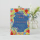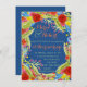 Hermosas invitaciones de bodas a la fiesta mexicana de mandarina, roja y azul. Estas invitaciones coloridas y festivas para bodas se personalizan fácilmente para su evento, simplemente añadiendo sus detalles en el estilo de letra y color, redacción y disposición de su elección. También puede cambiar el color de fondo.