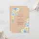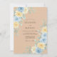 Este diseño presenta un fondo cálido de color arena adornado con suaves flores de acuarela. Delicadas rosas azules pálidas y amarillas claras se encuentran entre hojas de eucalipto plateadas para un aspecto sereno y natural. La paleta de azul polvoriento, amarillo crema y beige terroso crea una atmósfera romántica. Los racimos botánicos exuberantes acentúan la disposición, ofreciendo un aspecto elegante y pulido.
