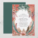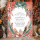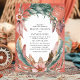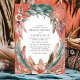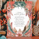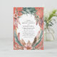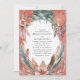 Esta invitación de boda bohemio presenta una delicada corona de plumas, hojas y flores que rodea un área de texto central, con un atrapasueños que agrega un toque caprichoso. Puesta sobre un fondo de coral suave, los tonos terrosos y los elementos naturales crean una atmósfera serena y libre, perfecta para una boda inspirada en el boho. Este diseño captura la esencia de una celebración relajada y amante de la naturaleza, ideal para parejas que buscan un estilo de boda único y relajado.
