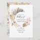 Invitación bodas bohemias con pampas secas, palma, monstera, hojas de plátano y flores.