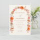 invitación de código QR de boda boho de flores silvestres de otoño con elegante letra cursiva naranja quemada. Florales únicos de acuarela pintados a mano boho chic en un hermoso arco floral caprichoso en naranja quemada, púrpura, marrón, amarillo, rosa, naranja, terracota y paleta de colores verdes. Plantillas fáciles de personalizar que incluyen generador de código QR del sitio web de la boda y tipografía moderna y elegante de color naranja quemado para los detalles esenciales de la boda sobre un fondo beige. Perfecto para una boda bohemio caprichosa de jardín con tema de verano, primavera u otoño. Obra original del artista Catherine Sweetman